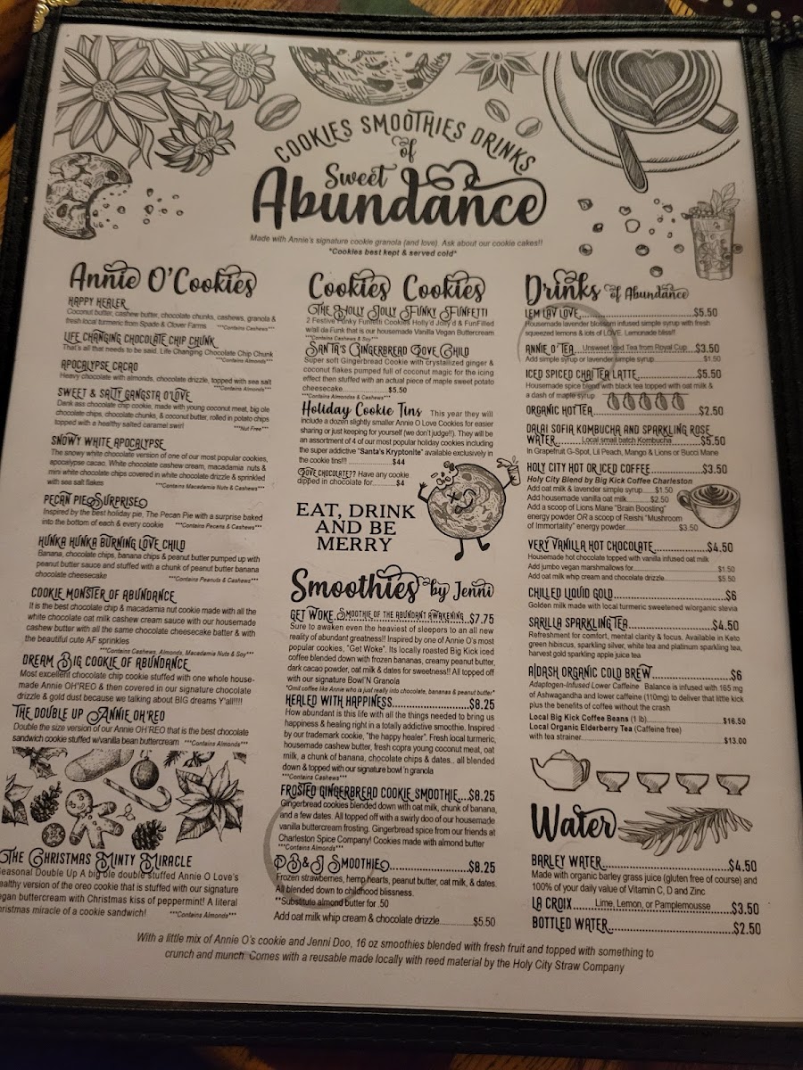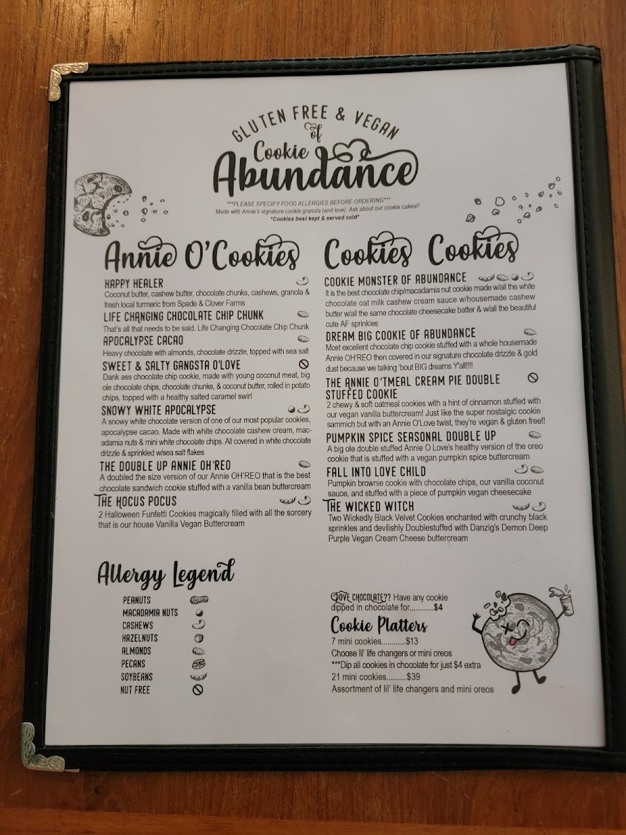 Annie O' Love's Cookie Cafe offers a thoughtfully crafted menu that feels both approachable and comforting, perfectly suited for casual visits any time of day. The café specializes in vegan and gluten-free options, from hearty savory bites to sweet treats, all designed with simple, familiar flavors and a touch of creativity.
